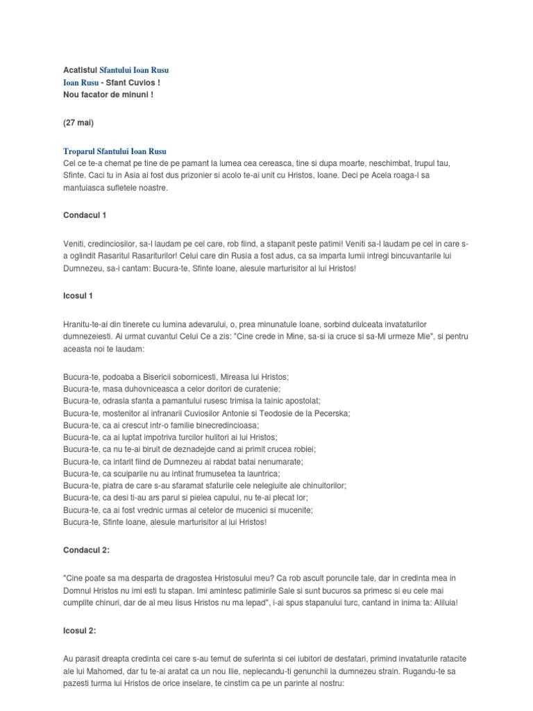Acatistul Sfantului Ioan Rusu Crestinortodox Ro