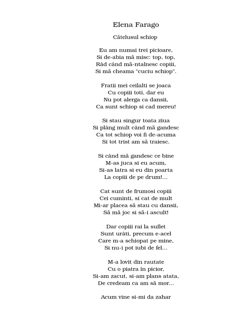 Lumea Poeziilor Cățelușul șchiop Elena Farago Facebook