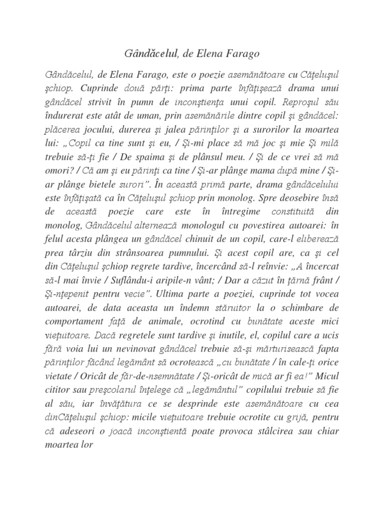 Gandacelul De Elena Farago Fisa De Lucru