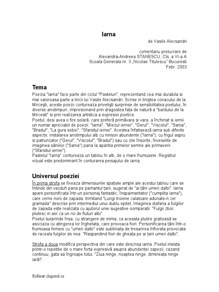 Referat Iarna De Vasile Alecsandri 334219 Graduo
