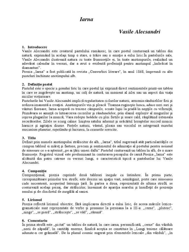 Referat Pastelul Iarna De Vasile Alecsandri 338577 Graduo