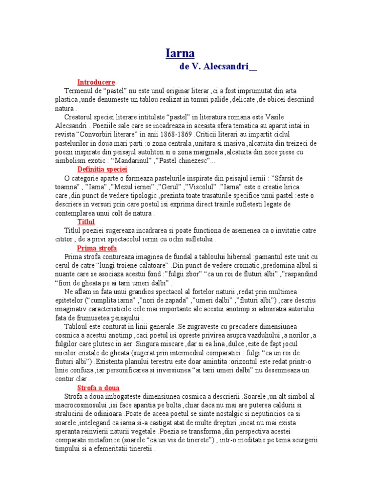 Referat Pastelul Iarna De Vasile Alecsandri 338576 Graduo