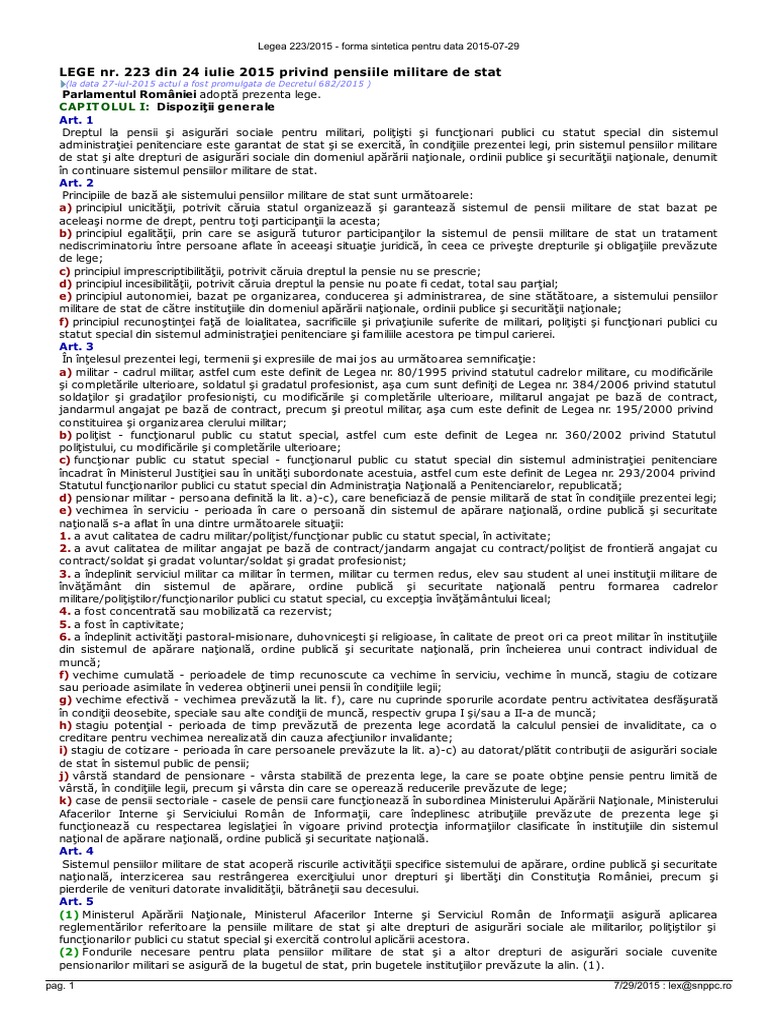 Legea Nr 223 2015 Privind Pensiile Militare De Stat Actualizată 2020 Lege5 Ro