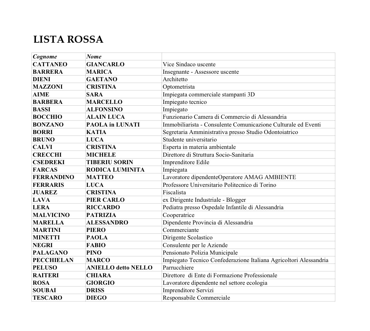 Lista Rossa I 32 Candidati Al Consiglio Comunale Di Alessandria
